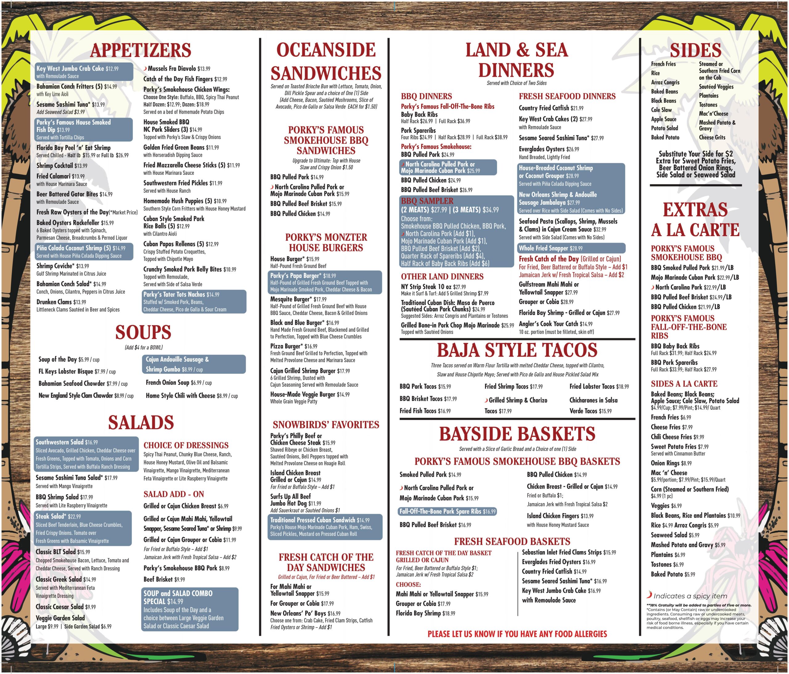 **ALL PORKY’S SALADS (EXCLUDING: Tortilla Sticks on Southwestern Salad)