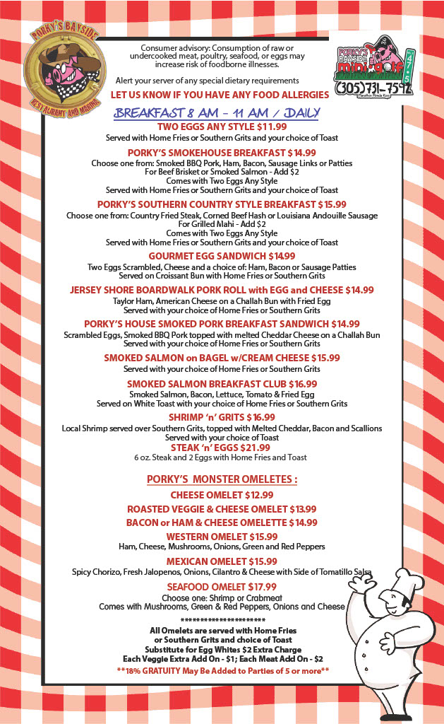 **ALL Porky’s BBQ MEATS ARE GLUTEN-FREE (Pork, NC Pork, Mojo Pork, Beef Brisket, Chicken, Ribs) & BBQ SAUCES are gluten-free!